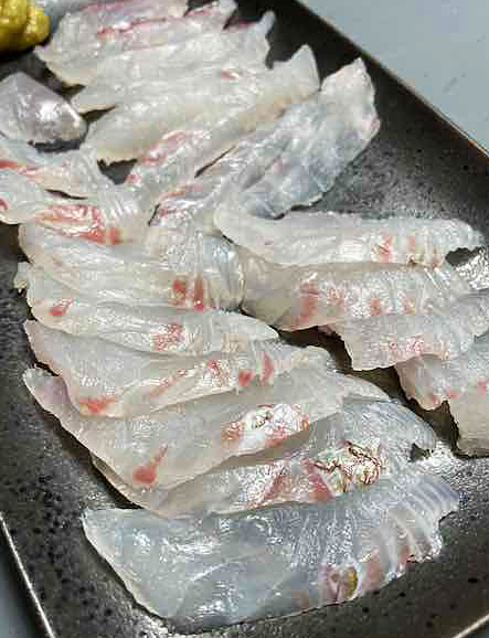 しかし、釣れたのはチビカサゴとメジマグロ… 全員リリースし佐藤君に真鯛をいただく事となる(苦笑・サンキュー