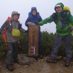 とりあえず小屋から三伏山まで登り、結局下山という結論に至りカッパで歩く。