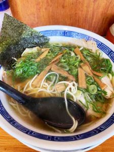 チャーシュウ麺に九条葱トッピング(写真は数口食べた後/苦笑