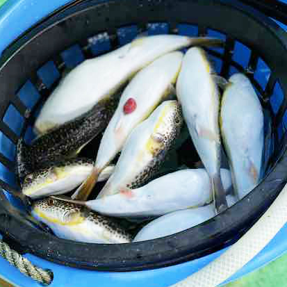 いつもは邪魔者扱いのふぐを狙って釣る(変な感じw
